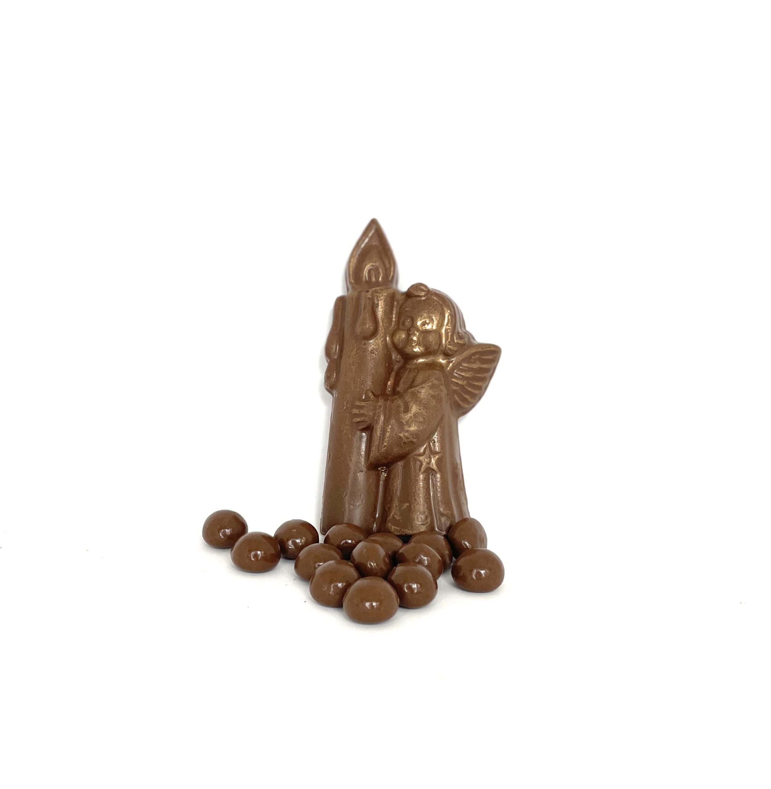 Angelito de chocolate con leche, contiene lentejitas de colores dentro