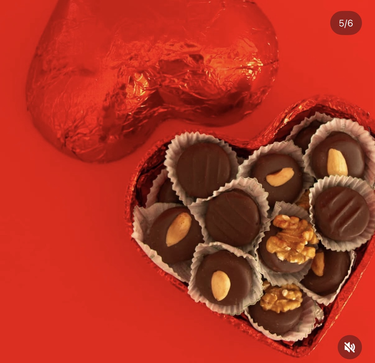 Chocolate en forma de corazón con bombones dentro.