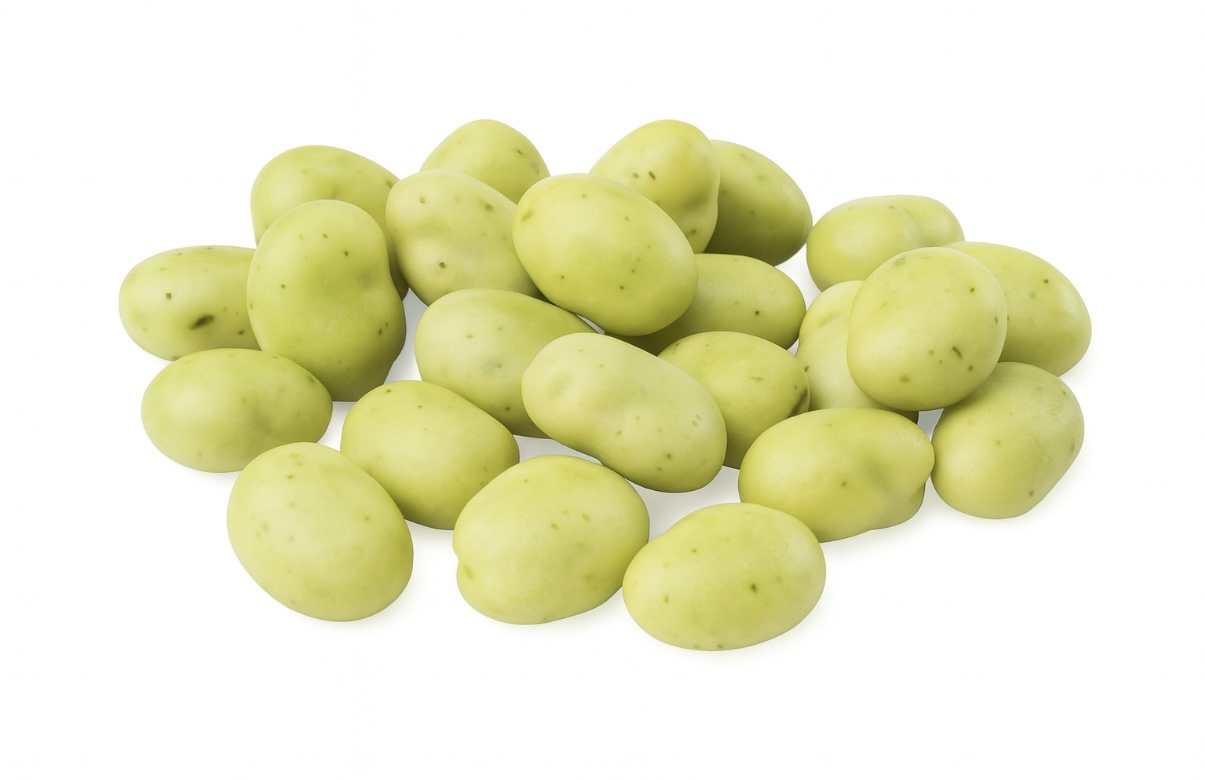 Pistachos bañados en chocolate blanco y pedacitos de pistachos.